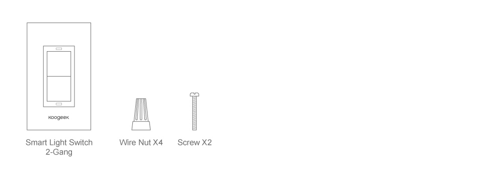 Koogeek Wi-Fi Enabled Smart Light Switch / 4 * Wire Nuts / 2 * Screws / Instruction Manual
